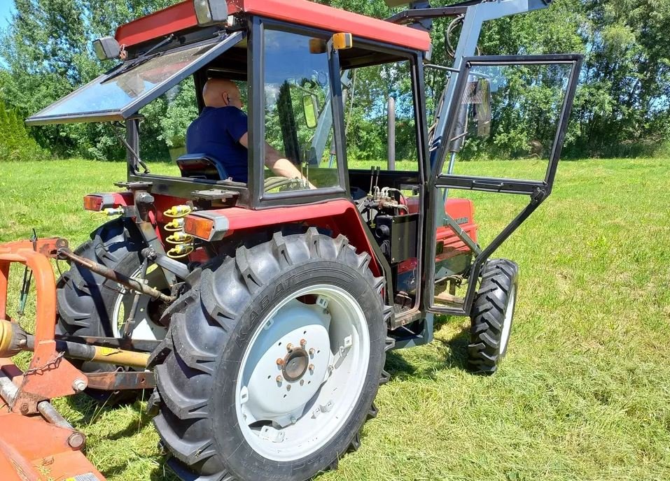 The tractor is ready for work, recently serviced with new fluids, hydraulic hoses, tires, and other wear parts replaced.