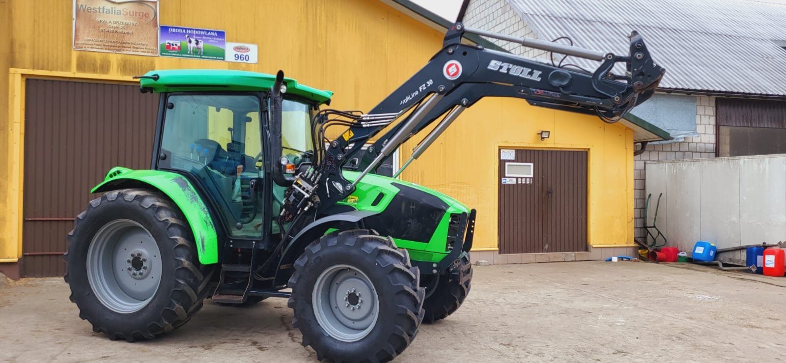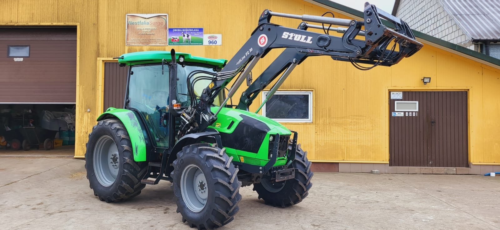 Equipado con cargador frontal Stoll (instalado en 2023), sistema hidráulico para remolques, caja de cambios mecánica estándar con velocidad máxima de 40 km/h, inversor de marcha (revers) y asiento con suspensión neumática.